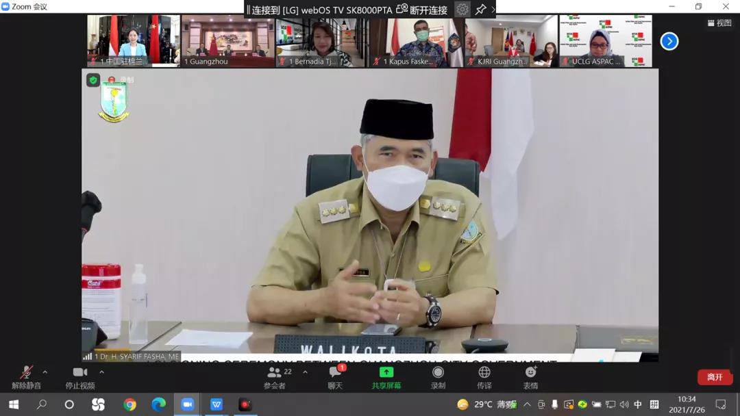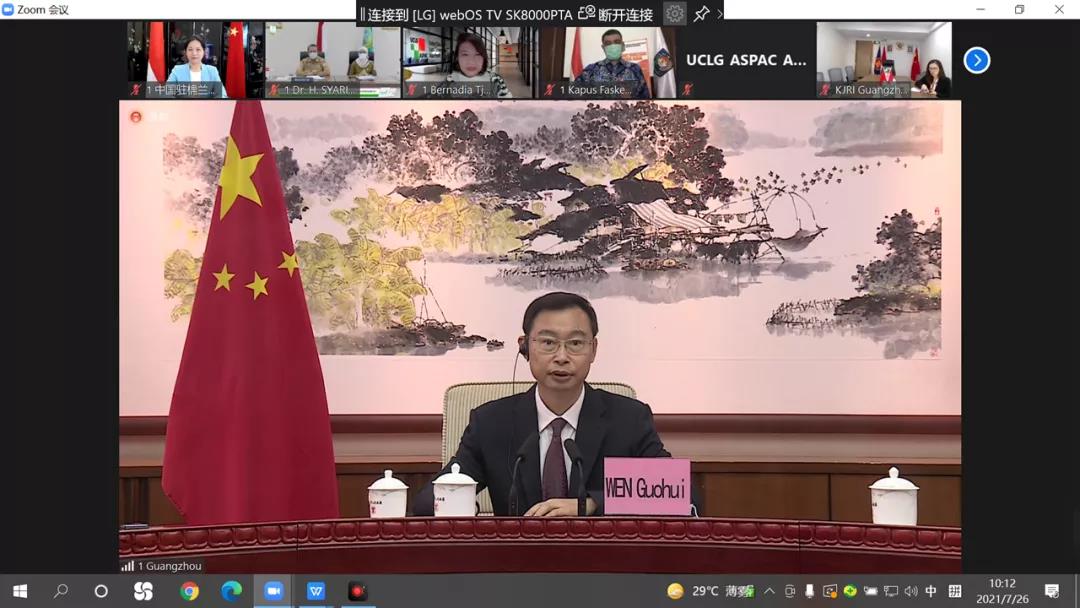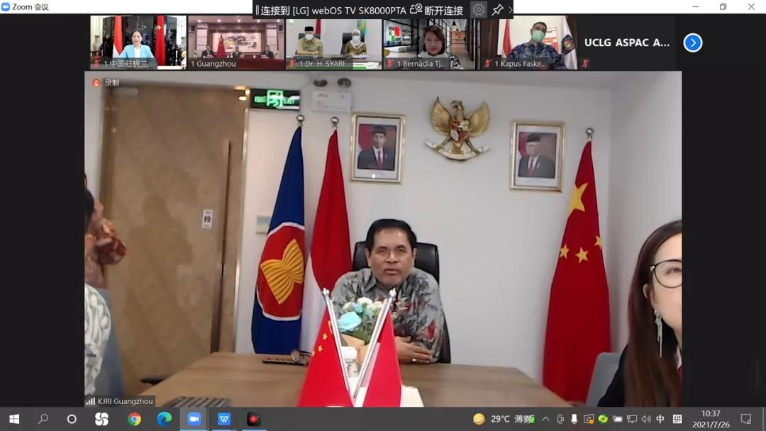 据中国驻棉兰总领事馆7月27日消息,7月26日,中国驻棉兰总领事邱薇薇出席广州市与占碑市缔结友好城市关系意向书在线签署仪式。广州市市长温国辉、占碑市市长沙里夫·法沙、世界城地组织亚太分会秘书长博纳蒂亚、印尼驻华大使周浩黎、印尼内政部合作促进中心主任罗尼等出席活动。