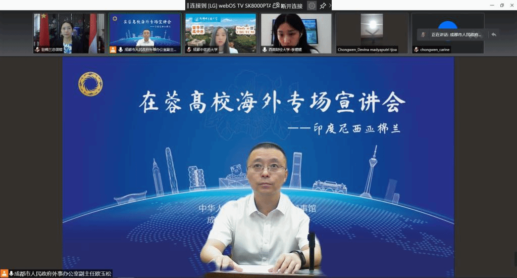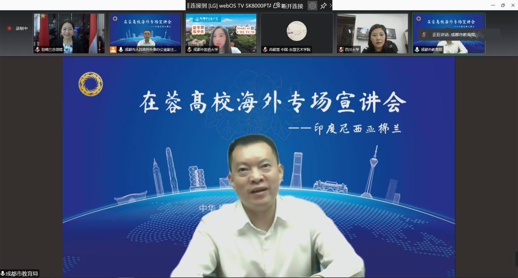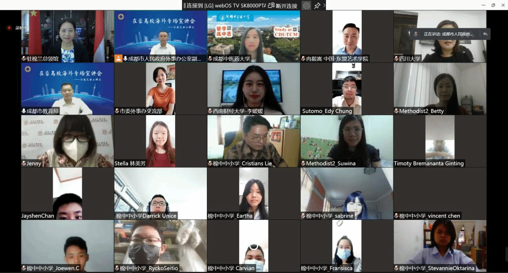 四川大学、西南财经大学、成都中医药大学、成都大学中国东盟艺术学院、电子科技大学、西南交通大学、成都理工大学、成都农业科技职业学院等8所高校细致介绍了学校有关情况,与棉兰市华校师生在线互动并回答提问。