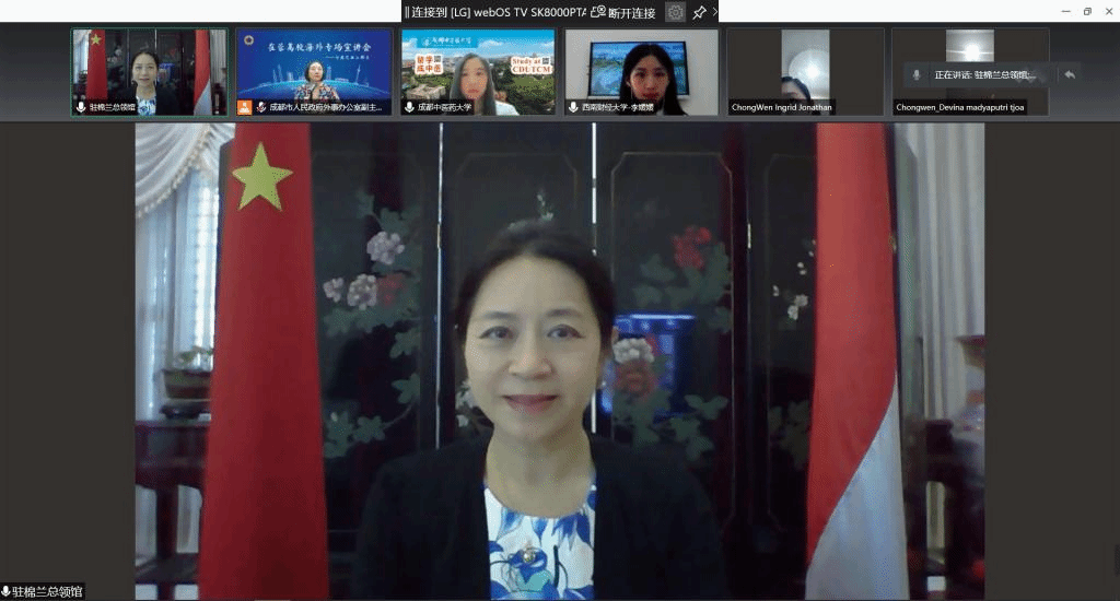 据中国驻棉兰总领馆8月30日消息,8月27日,中国驻棉兰总领事邱薇薇出席在蓉高校棉兰专场招生政策在线宣讲会。宣讲会由成都市人民政府外事办公室、成都市教育局、中国驻棉兰总领馆联合举办。成都市外办副主任欧玉松、市教育局副局长沈鹏出席并致辞。四川大学、西南财经大学、成都中医药大学、成都大学中国东盟艺术学院等8所成都市高校就学校情况、专业设置、奖学金及招生政策等进行宣讲。来自棉兰市崇文、棉中、苏东中学、卫理二校等多所华校的近400名师生参加宣讲会。