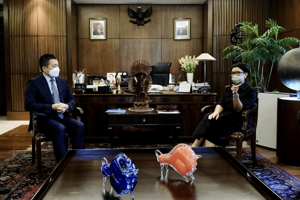 据中国驻印尼大使馆3月4日消息,3月4日,陆慷大使到任拜会印尼外交部长蕾特诺。