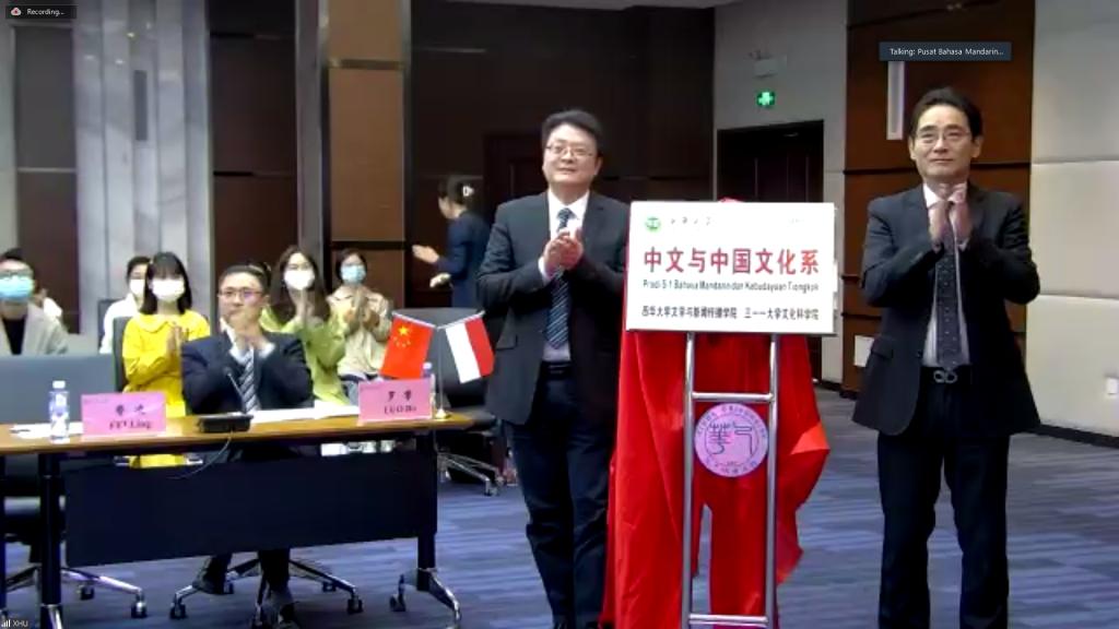 致辞结束后,“三·一一”大学会场和西华大学会场分别举行揭牌仪式,各方嘉宾进行线上合影,气氛积极热烈。
