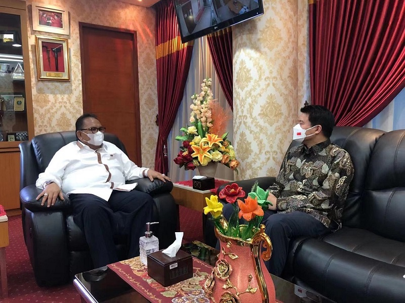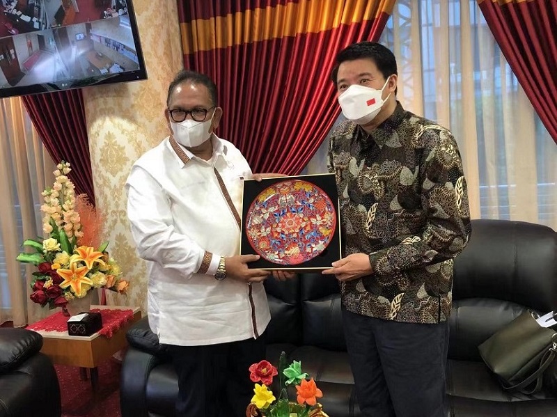 据中华人民共和国驻棉兰总领事馆4月20日消息,4月20日,中国驻棉兰总领事张敏到任拜会北苏门答腊省(苏北省)议长巴斯卡米·金汀。