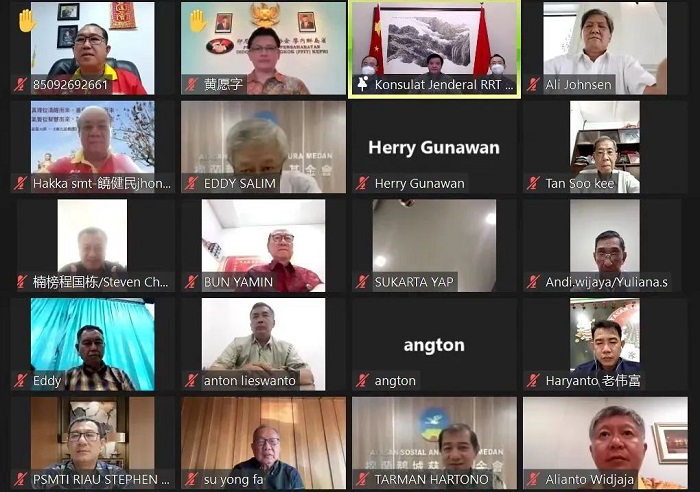 据中华人民共和国驻棉兰总领事馆4月22日消息,4月22日,中国驻棉兰总领事张敏以视频方式与领区华人华社进行交流,苏北华联理事会主席苏用发、印尼华裔总会执行主席黄印华、苏北华联执行主席徐煜权等领区华社领导100余人出席。