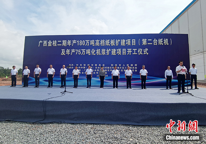 据中新社5月30日报道,由印尼金光集团APP部署在中国(广西)自由贸易试验区钦州港片区,年产180万吨高档纸板扩建项目(第二台纸机)及年产75万吨化机浆扩建项目5月30日宣布开工。
