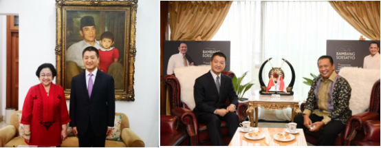 履新以来,陆大使分别拜会印尼人民协商会议主席班邦、副总统马鲁夫,政治法律安全统筹部长马福德,经济统筹部长、专业集团党总主席艾尔朗加,印尼对华合作牵头人、海洋与投资统筹部长卢胡特,外长蕾特诺,国防部长、大印尼行动党总主席普拉博沃,法律人权部长亚索纳,财政部长丝莉,卫生部长布迪,贸易部长鲁特菲,发展规划部长、建设团结党总主席苏哈尔索,总统办公厅主任穆尔多科,民主斗争党总主席、前总统梅加瓦蒂,印尼前总统、民主党最高委员会主席苏希洛,印尼前副总统、红十字会总主席卡拉等政要。