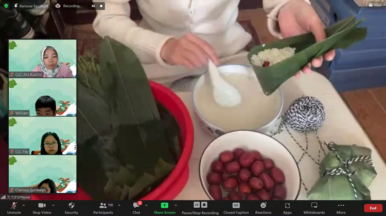阿拉扎大学孔子学院印尼方副理事长穆尼先生在活动开幕致辞中表示,印尼大学生学习参与中国传统节日活动具有重要价值,此次端午节主题活动可以增加印尼学生对中华文化的了解与认识,促进两国文化的交流。福建师范大学海外教育学院黄彬书记也通过线上方式提前向孔院师生表达了端午佳节的祝福并预祝本次活动能够顺利举行。