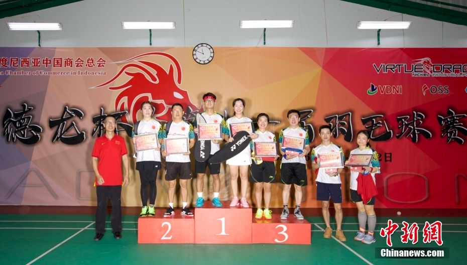 据中新社雅加达6月12日报道,6月12日,40余家印尼中资企业和单位的121名男女羽毛球爱好者经过周末两天厮杀,在雅加达FKS羽毛球馆决出了印尼中国商会总会“德龙杯”第十一届羽毛球赛女单、男单、混双、男双四个项目冠亚军。