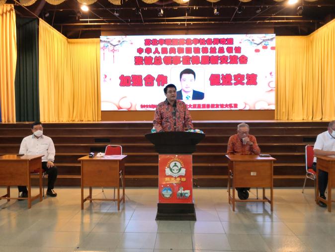 张总领事在致辞中高度赞赏苏北华联自2004年成立以来,在扶危济困、弘扬中华文化、促进中印尼交流、凝聚华人华社力量等方面做出的重要贡献,感谢苏北省华人华社长期以来为中印尼友好交往所做的大量卓有成效的工作。