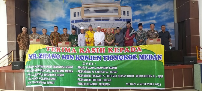 据中华人民共和国驻棉兰总领事馆11月4日消息,11月4日,中国驻棉兰总领馆开展物资捐赠活动,通过领区10个宗教团体、伊斯兰教学校向受自然灾害和疫情等影响的困难民众捐赠基本生活物资。在捐赠仪式上,张敏总领事发表视频致辞。印尼华裔总会执行主席黄印华积极协助安排物资捐赠活动。
