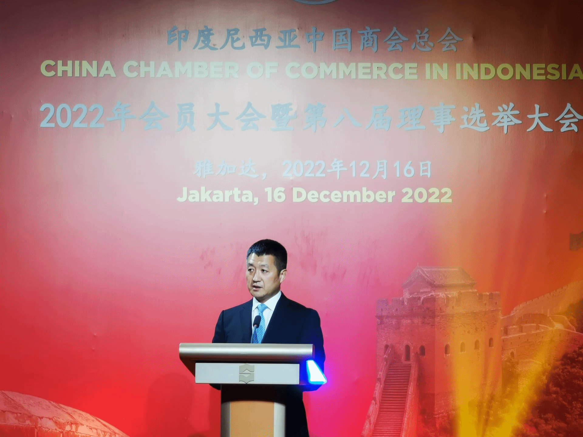 据中华人民共和国驻印度尼西亚共和国大使馆12月19日消息,12月16日,印度尼西亚中国商会总会2022年会员大会暨第八届理事选举大会在雅加达隆重召开,200多家会员企业代表参会。陆慷大使应邀出席并致辞。