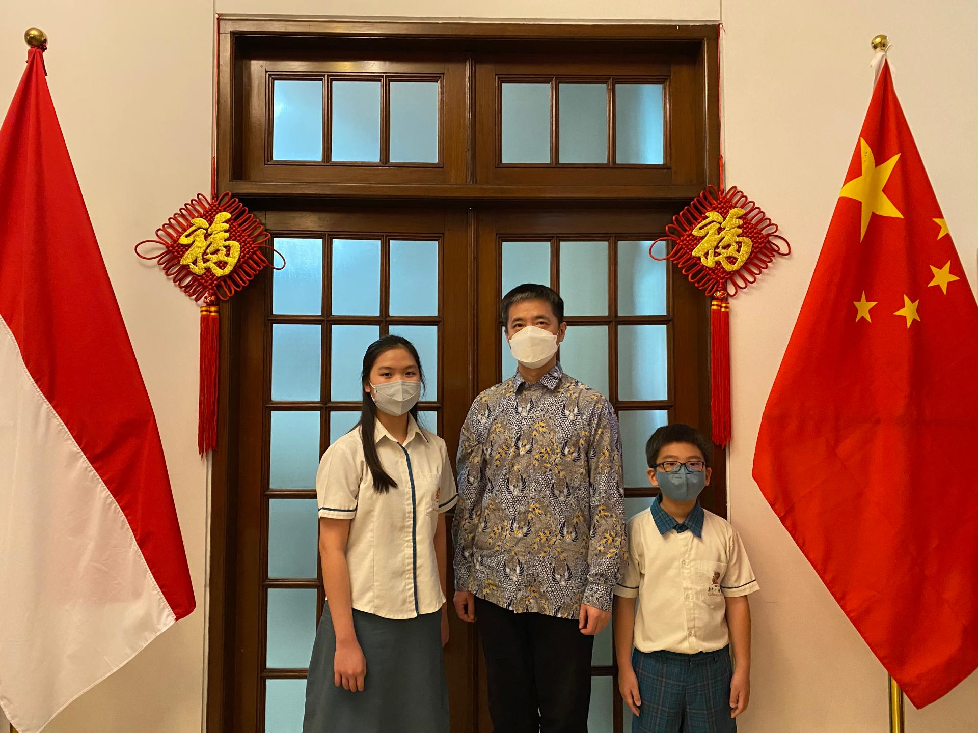 徐永总领事首先向年度奖助学金获得者表示祝贺,详细介绍中印尼双边关系重要合作成果及中国未来发展目标和方向,并表示高兴看到“中国总领事奖助学金”在同学们学习中文、求学求知、实现梦想的成长过程中产生良好效果。希望同学们珍惜时光、勤奋学习,努力用知识成就自己、用才干服务社会。欢迎同学们在继续学好中文的基础上,有机会多去中国走走看看,与中国的中小学生进行广泛交流,更加深入地全面了解中国悠久灿烂的历史文化,亲身感受中国式现代化的发展建设,将来以实际行动为两国人民长久友谊、促进两国交流合作作出自己的贡献。