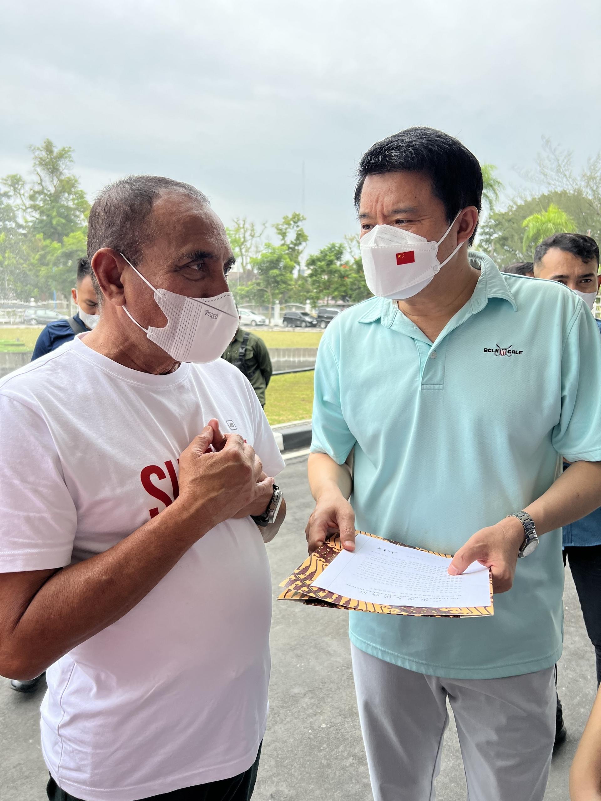 张总领事转交了广东省王伟中省长致艾迪省长信函,并表示,今年是广东省和苏北省缔结友好关系20周年,也是双方合作具有标志性意义的一年。20年来,两省保持了交往的热度和活力,经贸、教育、文化等领域合作成果斐然,广东省政协与苏北省议会多次派代表团互访。特别是新冠肺炎疫情发生以来,广东省积极参与中印尼抗疫合作,2020年向苏北省捐赠医用口罩、手套等大量防疫物资,今年又向苏北省捐赠呼吸机,彰显了中印尼两国人民同舟共济、守望相助的真挚情谊。期待两省能继续加强高层互访、经贸往来、文化旅游、农业、体育等领域合作,为中印尼友好关系锦上添花。衷心期待与艾迪省长以及领区各界人士一道,按照两国元首达成的重要共识,为领区省市与中国开展地方交流合作搭建新平台、拓展新空间,不断充实中印尼全面战略伙伴关系内涵,谱写双边友好合作新篇章。
