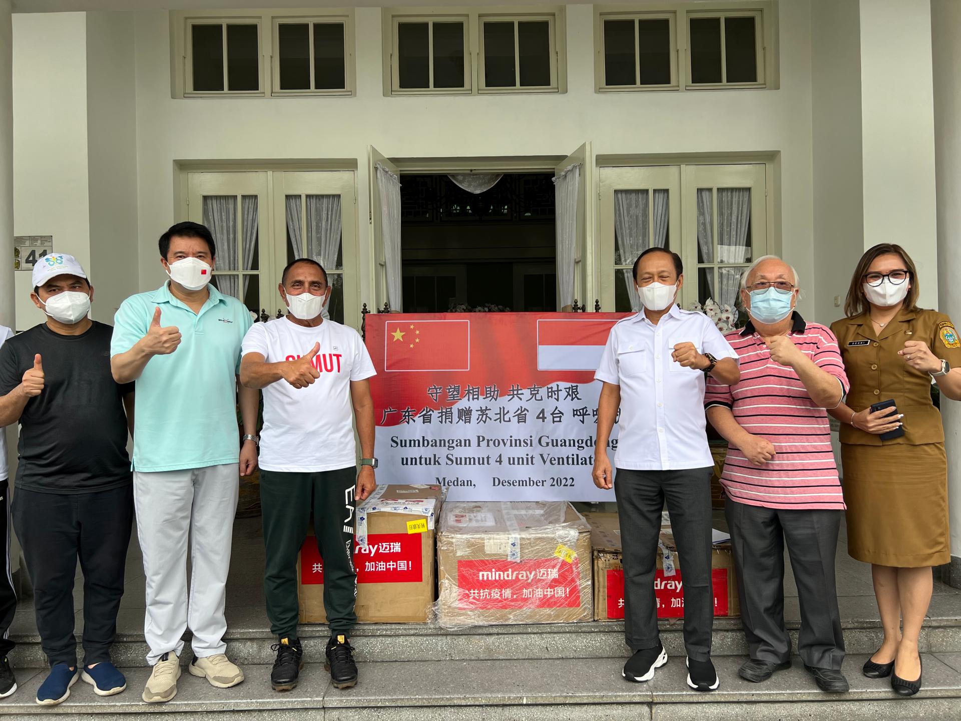据中华人民共和国驻棉兰总领事馆12月28日消息,12月27日,中国驻棉兰总领事张敏向北苏门答腊省(以下简称“苏北省”)省长艾迪移交广东省捐赠的呼吸机。印尼华裔总会执行主席黄印华等出席活动。