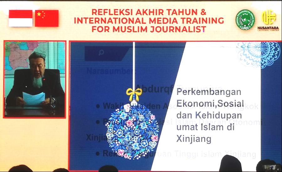 据中华人民共和国驻印度尼西亚共和国大使馆1月3日消息,2022年12月31日,印尼伊斯兰组织(LPOI)和努山塔拉文化中心主办的印尼穆斯林记者培训班开幕。陆慷大使、LPOI总主席赛义德教授、印尼国家安全局瓦万副局长、印尼反恐机构努尔瓦希德主任应邀出席并发表演讲。中国伊斯兰教协会副会长、新疆伊斯兰教经学院院长阿不都热克甫·吐木尼牙孜线上参会并发言。近200名印尼穆斯林记者现场参会,伊联电视台在线全程直播开幕式。