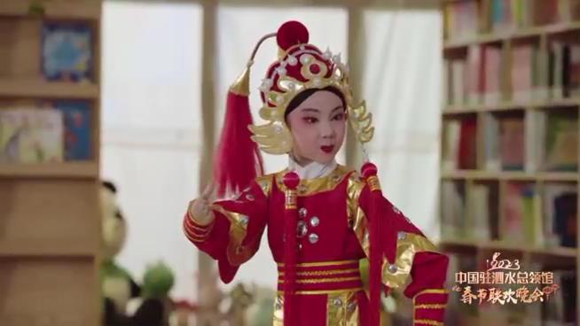 总领馆春节联欢晚会由《守望山河狮舞东方》拉开序幕,以画家创作“南北狮融合图”的构思为主线,从珠三角到长江,从长城到黄河,将思绪中的南北狮在山河故土间进行舞动演绎。趣味戏曲《爷爷奶奶来接我》重点表达天真可爱的少年儿童在戏剧名家亲自示范指导下向爷爷奶奶汇报表演学习中国传统戏曲艺术的收获成果。音武诗画《自古英雄出少年》采用实景与科技相结合,以笔为剑、以墨为锋、以字为刃,将诗词与武术紧密相融,演绎“意气风发少年志,激扬墨舞山河图”的写意故事。舞蹈《灯笼红》将制作灯笼的每道工序蕴含其中,通过时空和场景的不断转换展现中华传统文化和传统工艺之美。情景舞蹈《元夕之约》重现宋朝上元灯会的民间风俗,彰显喜庆热闹的节日气氛,表达对未来美好生活的向往,将总领馆2023年春节联欢晚会推向高潮。