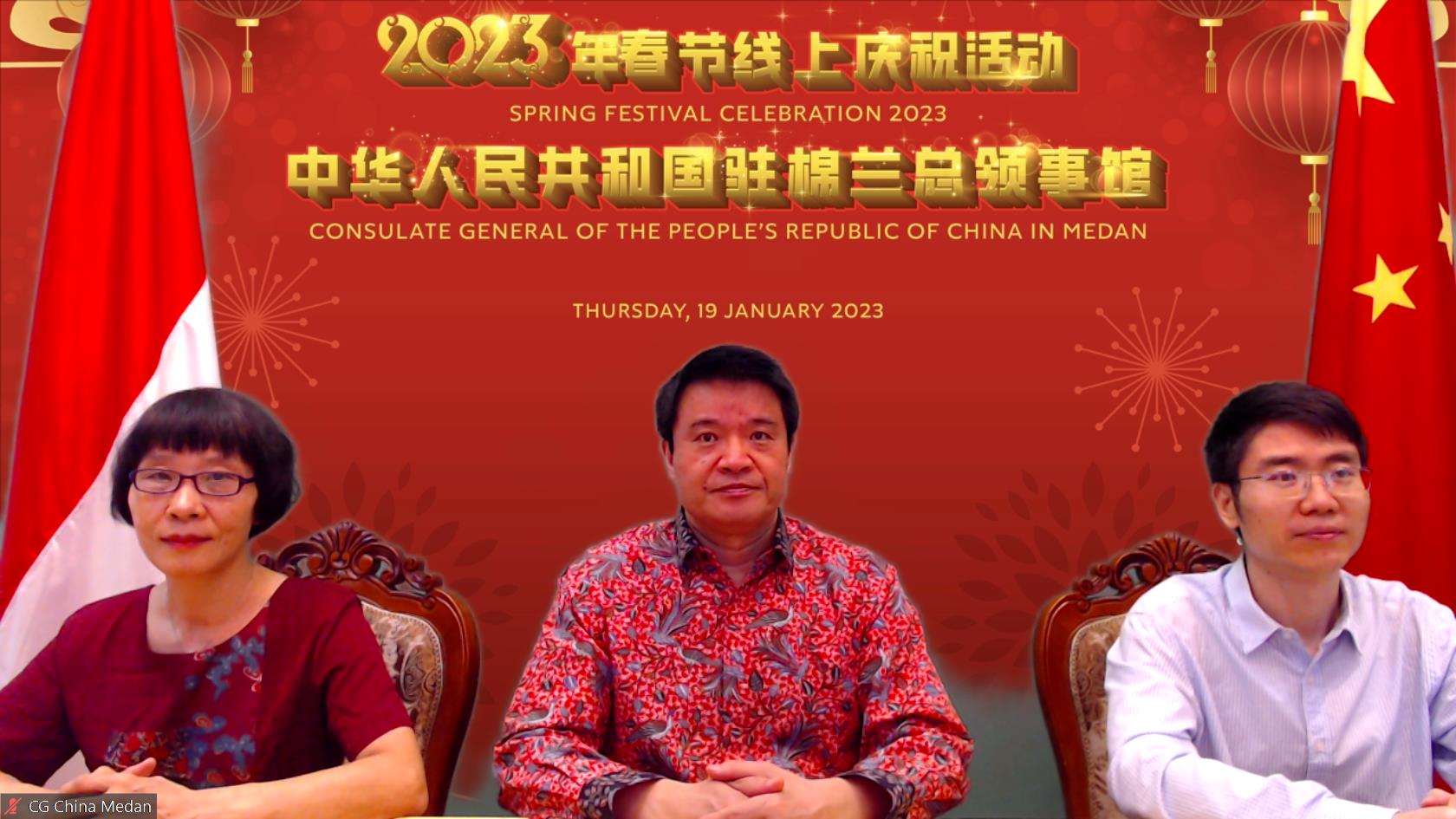 据中华人民共和国驻棉兰总领事馆1月19日消息,1月19日,驻棉兰总领馆举办2023年线上春节庆祝活动,张敏总领事出席并致辞。北苏门答腊省省长、廖内群岛省省长、楠榜省省长、邦加勿里洞省省长、南苏门答腊省议长、棉兰市市长、占碑市市长、巴东市市长、沙摩西县县长和日里雪冷县县长等专门为此次活动录制视频祝贺。驻棉兰华人总领事和华人荣誉领事、领区各省华社、媒体、华校代表和中资企业负责人等近300人欢聚云端,共庆新春。活动由徐春娟副总领事主持,领侨处主任赵鲲鹏出席。