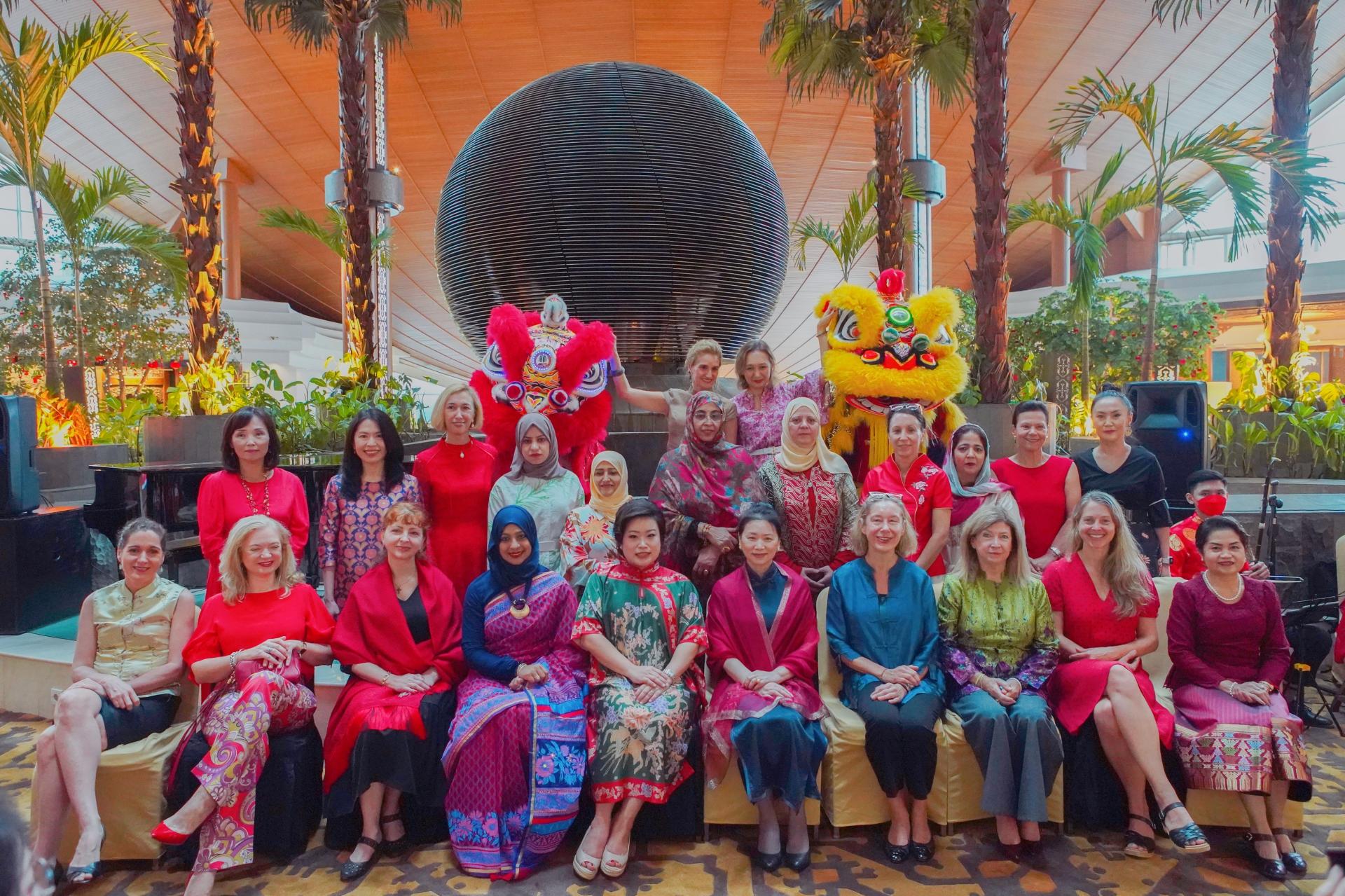 据中华人民共和国驻印度尼西亚共和国大使馆2月3日消息,1月31日,中国驻印尼使馆妇女小组应邀参加雅加达国际妇女俱乐部举办的中国新年庆祝活动,与百余名俱乐部成员同庆新春、共话友谊。使馆妇女小组组长陈悦参赞,俄罗斯、老挝驻东盟使团,阿根廷、孟加拉驻印尼使馆等26国使馆团大使夫人出席活动。