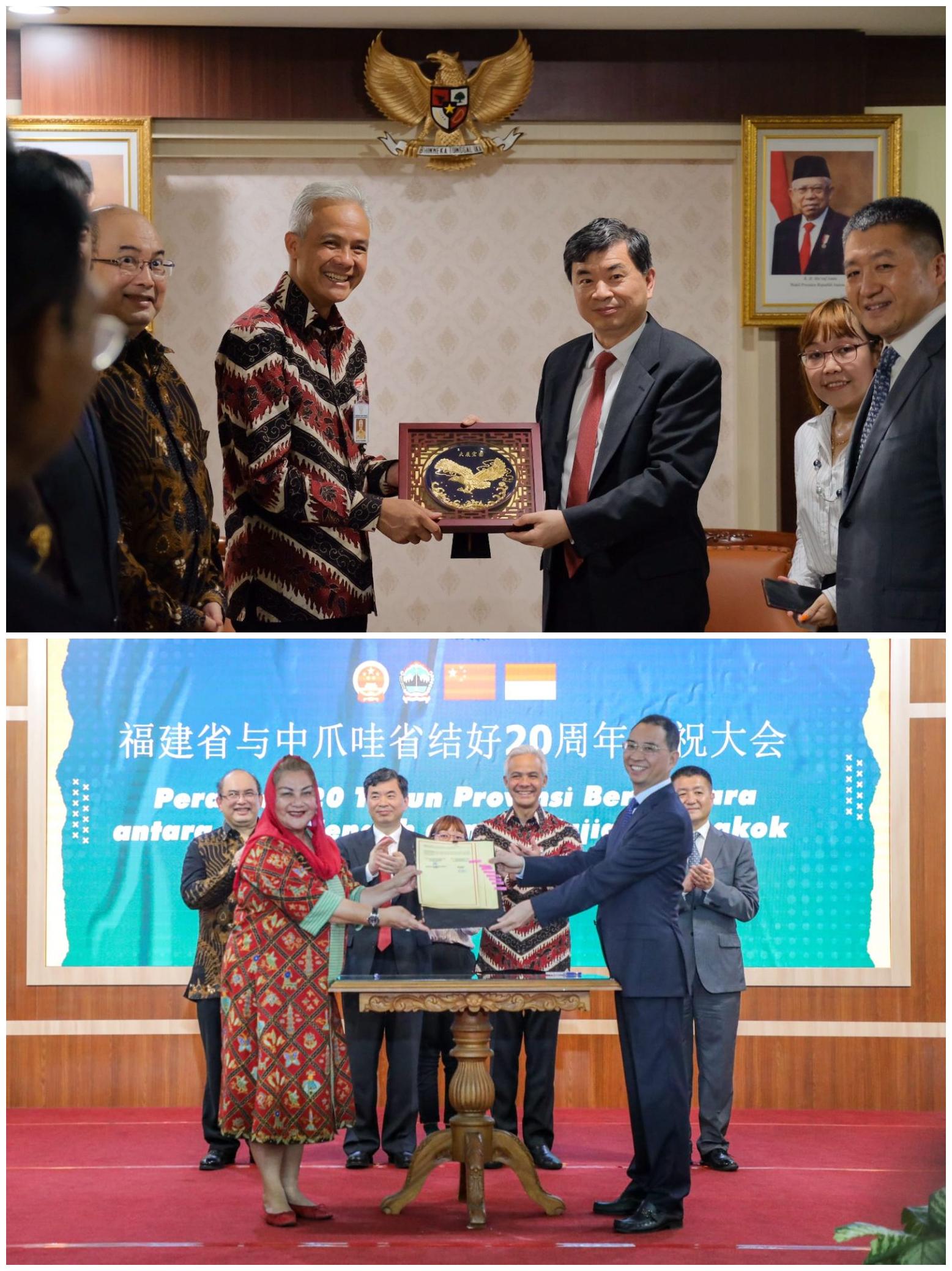 据中华人民共和国驻印度尼西亚共和国大使馆5月15日消息,5月10日,陆慷大使陪同正在中爪哇省访问的福建省委书记周祖翼会见中爪哇省省长甘加尔,出席福建省与中爪哇省结好20周年相关纪念活动,并共同见证两省签署建立丝路伙伴关系协议、福州市与三宝垄市签署深化友城合作备忘录。中国驻泗水总领事徐永,三宝垄市市长赫维丽塔、印尼驻广州总领事斌德加等出席活动。
