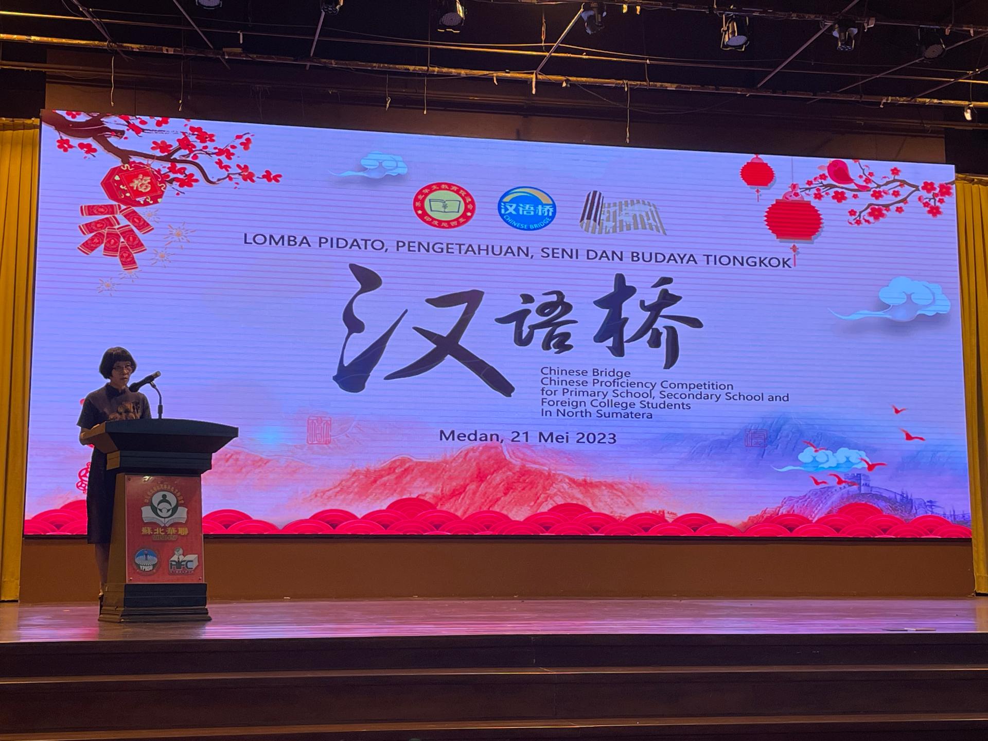 据中华人民共和国驻登棉兰总领事馆5月21日消息,5月21日,驻棉兰总领馆徐春娟副总领事出席“汉语桥”世界大、中、小学生中文比赛印尼赛区北苏门答腊省选拔赛并致辞。印尼苏北华文教育促进会主席黄世平、苏北华联理事会执行主席徐煜权等出席活动。