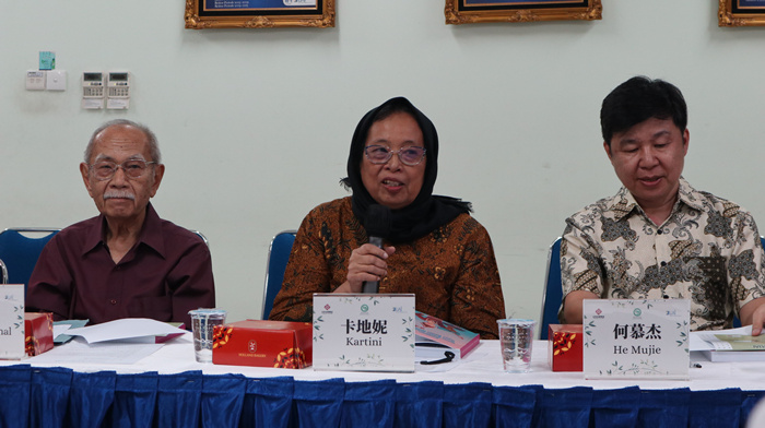 Kartini在致辞中表示,火炬出版基金出版社愿意出版来自世界不同国家的书籍,希望进行多样化的文化互动,努力出版更多的书籍,让世界人民了解世界。去年与山东教育出版社成功举行了《中外文学交流史(中国-东南亚卷)》(印尼文版)版权输出签约仪式,希望未来有更多的合作交流。