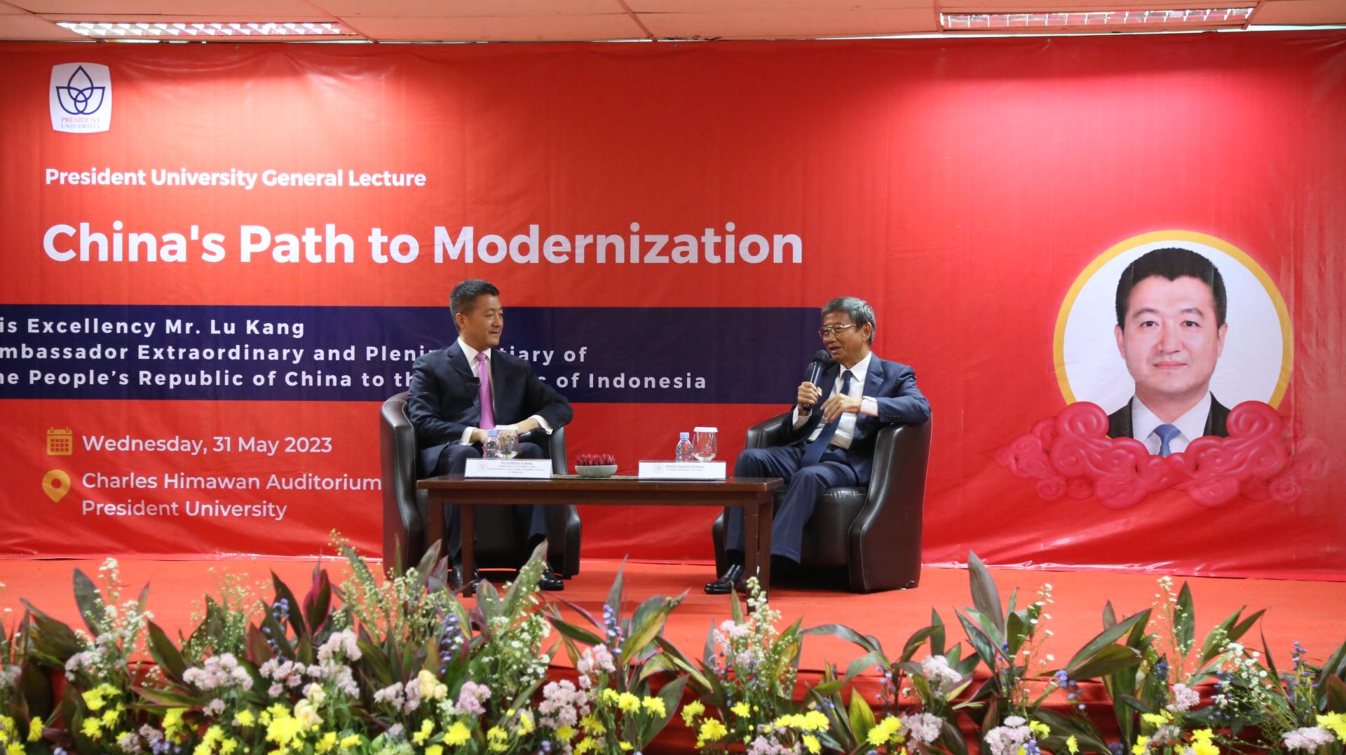 据中华人民共和国驻印度尼西亚共和国大使馆5月31日消息,2023年5月31日,陆慷大使应邀赴印尼总统大学(President University)就中国式现代化发表主旨演讲,并回答老师和学生提问。演讲后,陆慷大使与在校中国留学生及校友进行亲切互动。演讲全文(中译文)如下: