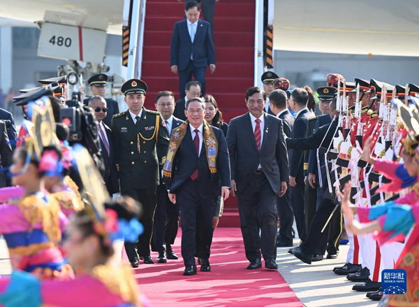 当地时间5日下午,李强乘坐的包机抵达雅加达苏加诺-哈达机场。礼兵沿红毯两侧列队致敬,身着传统服装的当地民众跳起印尼民族舞蹈喜迎中国贵宾。印尼对华合作牵头人、统筹部长卢胡特和中国驻印尼大使陆慷、驻东盟大使侯艳琪等到机场迎接。