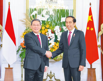 李强首先转达习近平主席对佐科总统的亲切问候。李强表示,在两国元首战略引领下,中印尼关系保持强劲发展势头。一个多月前,习近平主席同你在成都会晤,就建设中印尼命运共同体“实景图”达成新的重要共识。中方愿同印尼一道落实两国元首重要共识,进一步加强发展战略对接,促进两国共同发展,为地区稳定繁荣注入持久动力。