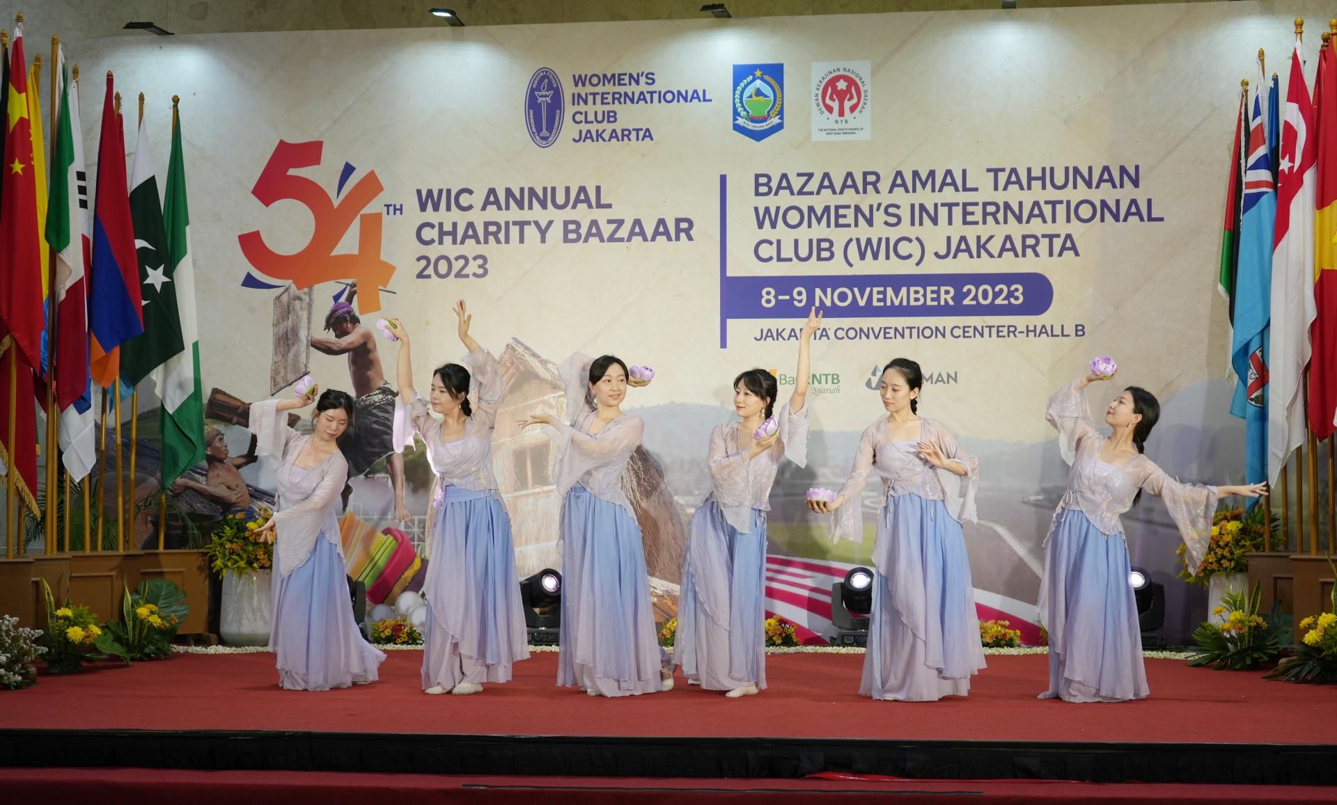 义卖期间,使馆女外交官在文化活动中表演中国古典舞《美人灯》,曼妙舞姿为活动增添靓丽色彩。