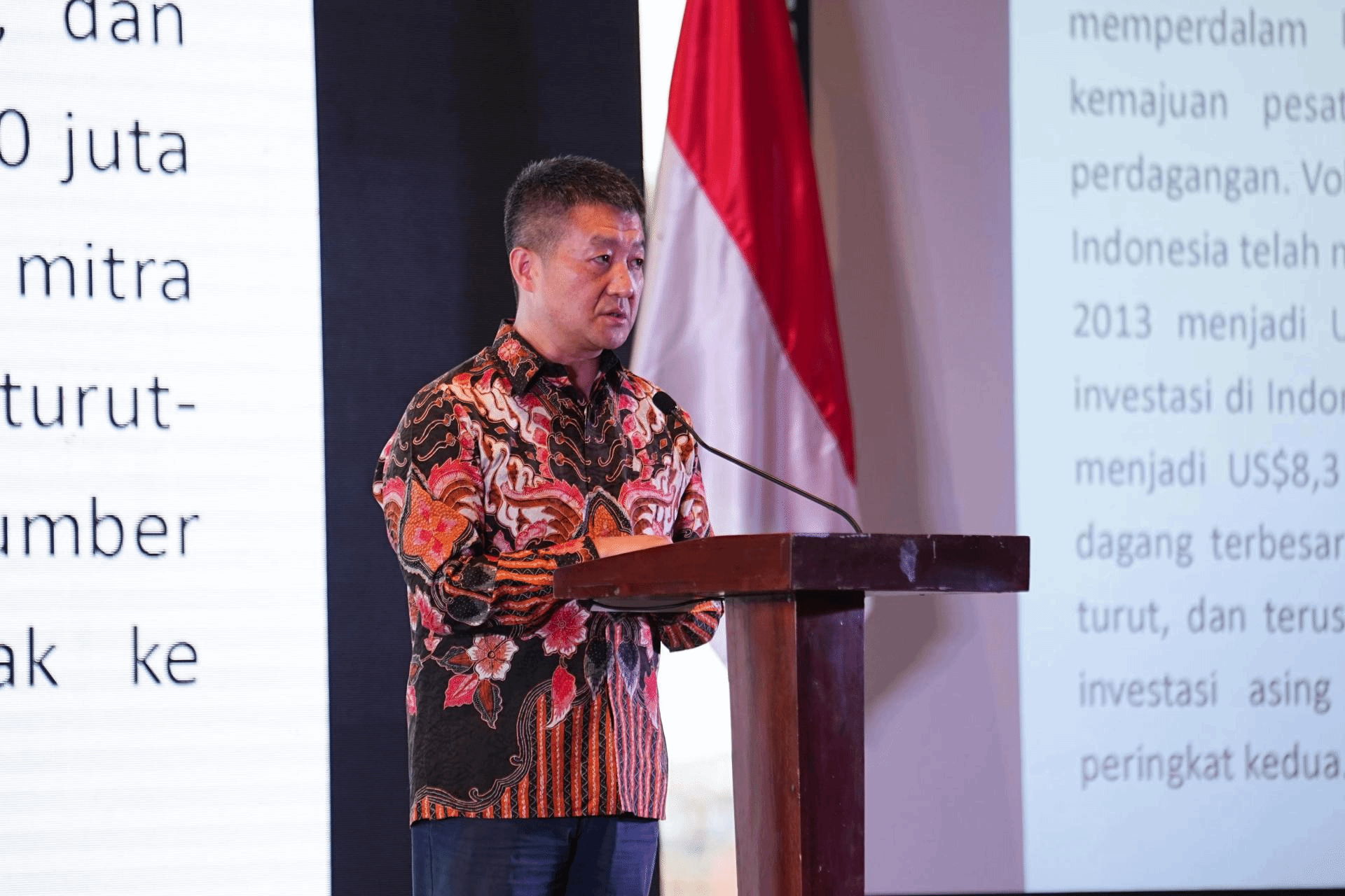 大家上午好!非常高兴出席第四届印尼—中国商业伙伴论坛。首先,我要特别感谢艾瑞克代理统筹部长与欧迪代理省长创造机会,让我们能够在风景如画的拉布安巴焦相聚一堂,回望一年发展,畅谈机遇挑战,共谋未来合作。