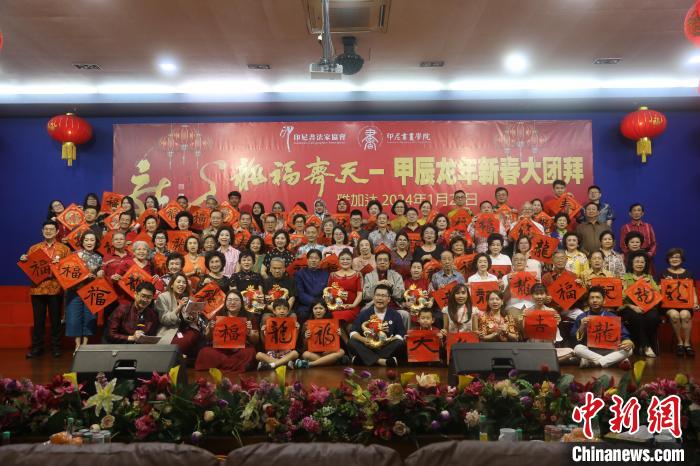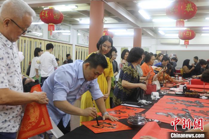 当地时间28日上午,这些书法爱好者齐聚印尼书画学院,参加“‘龙’福齐天——甲辰龙年新春大团拜”活动。活动由印尼书法家协会和印尼书画学院联合举办。