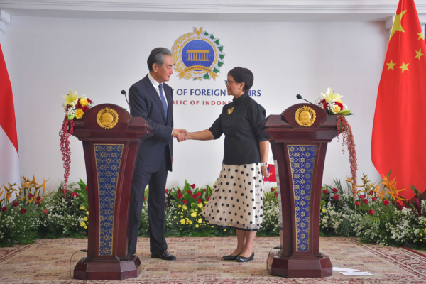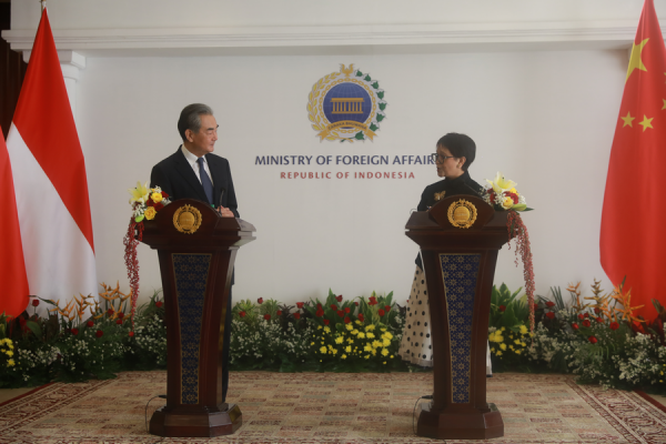 据中华人民共和国驻印度尼西亚共和国大使馆4月18日消息,当地时间2024年4月18日,中共中央政治局委员、外交部长王毅在雅加达同印尼外长蕾特诺会谈后共同会见记者。