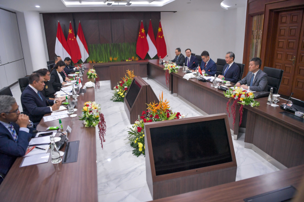 王毅强调,在地区国家共同努力下,亚洲总体保持和平发展大局,我们要团结一致,延续这一良好局面。中方愿同印尼密切协作,共同推动中国东盟关系高质量发展,共同巩固东盟主导的区域架构,共同维护南海和平稳定,共同推进地区和全球治理,捍卫国际公平正义,推动平等有序的世界多极化。