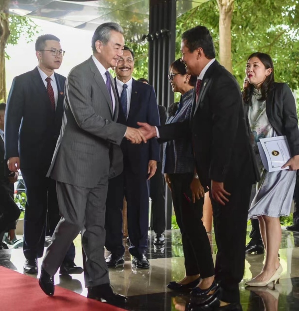 王毅表示,中国和印尼同为发展中大国和新兴经济体代表,传统友谊深厚,合作密切深入。过去一年,习近平主席同佐科总统两度举行重要会晤,为中印尼关系发展作出战略指引。中方始终视印尼为发展的同路人、合作的好伙伴,始终从战略高度和长远角度看待和发展同印尼的友好关系。我们赞赏印尼奉行对华友好政策,坚持一个中国原则。面对变乱交织的国际形势,两国前途命运紧密相连,责任担当更加重大。今年是中华人民共和国成立75周年,明年是印尼独立80周年,也是中印尼建交75周年,两国各自发展和双边关系都面临重要契机。中方愿同印尼在各自特色现代化道路上携手前行,以两国元首战略共识为遵循,发挥好高级别对话合作机制统筹作用,合力构建更高水平、更高质量的中印尼命运共同体,为两国人民谋求更多福祉,为世界和平、合作、发展事业作出新的贡献。
