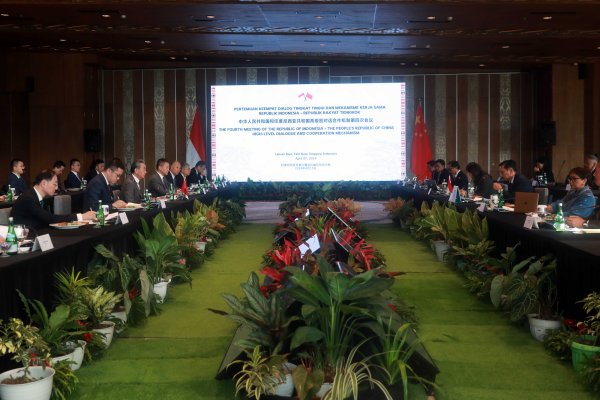 据中华人民共和国驻印度尼西亚共和国大使馆4月20日消息,当地时间2024年4月19日,中共中央政治局委员、外交部长王毅同印尼对华合作牵头人、统筹部长卢胡特在印尼共同主持中印尼高级别对话合作机制第四次会议,双方围绕推进中印尼命运共同体建设主线,就下阶段各领域务实合作深入交换意见,达成广泛共识。