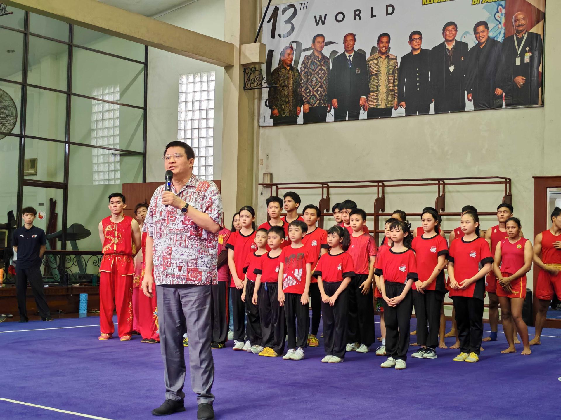 张总充分肯定邱馆长长期以来特别是担任三届印尼武术总会总主席期间为促进中印尼武术交流和印尼武术事业发展作出的重要贡献,并表示当前中印尼关系已进入共建命运共同体的新阶段,地方合作和民间交往是推动两国关系发展的重要基础。此次广东省派教练员前来苏北省指导交流,是落实去年两省达成的合作共识的具体举措。张总还观看了太极、散打等武术表演,预祝运动员们在今年印尼全运会上取得佳绩。