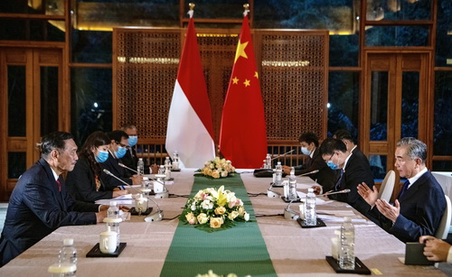 据外交部10月9日消息,2020年10月9日,国务委员兼外长王毅在云南腾冲同印度尼西亚总统特使、对华合作牵头人、统筹部长卢胡特举行会谈。