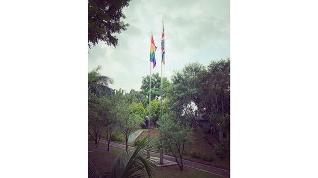 英国驻印度尼西亚大使馆此前上传了一张彩虹旗的照片,彩虹旗是LGBT的象征,以纪念5月17日的国际反对同性恋恐惧症、双性恋和跨性别恐惧症日(IDAHOBIT)。在这篇文章中,英国认为对被认为正确的价值观采取坚定立场很重要,即使这种态度让朋友不舒服。“有时候,对我们认为正确的事情采取立场是很重要的,即使朋友之间的分歧会让人感到不舒服。英国将支持LGBT+的权利并支持那些为他们挺身而出的人。我们希望生活在一个自由的世界里免受任何形式的歧视。”英国大使馆在帖子中写道。
