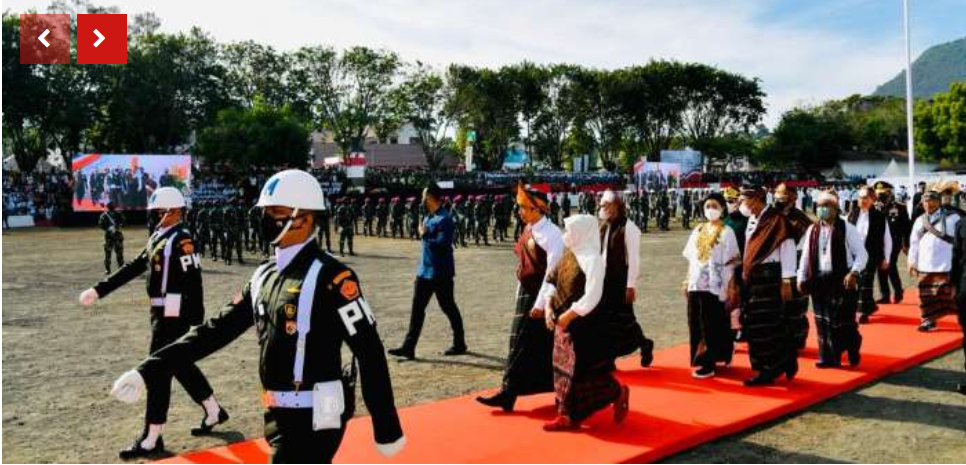 在此次仪式上,佐科总统身着红色和黑色图案相结合的恩德传统服装(名为Ragi Lambu Luka Lesu)而伊莉雅娜则穿着棕色和深紫色图案相结合的服装。担任仪式指挥官的第九军区(Kodam IX/Udayana)司令部军官Harfendi陆军准将。仪式开始前先向建国先烈默哀三分钟,随后,人民协商会议(MPR)议长班邦.苏萨迪奥(Bambang Soesatyo)宣读了建国五项原则潘查希拉文本,印度尼西亚国会副议长洛德韦克·保录(Lodewijk Freidrich Paulus)宣读了印度尼西亚共和国1945年宪法序言。佐科总统作为仪式检阅官随后发表了重要讲话。 随后,由人类发展与文化统筹部(Menko PMK)部长穆哈基尔·艾芬迪(Muhadjir Effendy)带领祈祷朗诵。