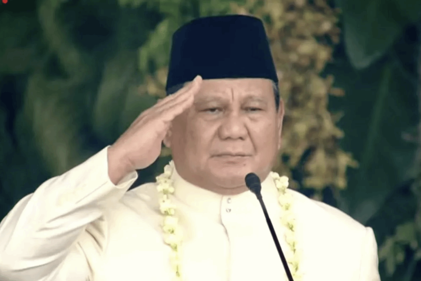 身着传统贝斯卡普服饰、腰间系着披巾的普拉博沃庄严诵读宣言:"我们,印尼人民,特此宣布印尼独立。有关权力移交等事宜,将以尽职尽责的态度尽快完成。"