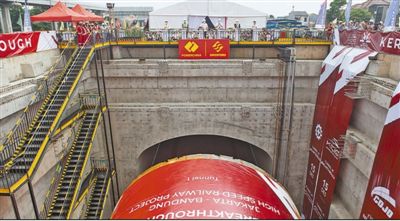 雅万高铁1号隧道位于印尼首都雅加达市内,全长1885米,是全线控制性工程。隧道为单洞双线设计,2018年6月开工,由国铁集团所属中国铁路国际公司牵头的中方施工联合体负责施工。