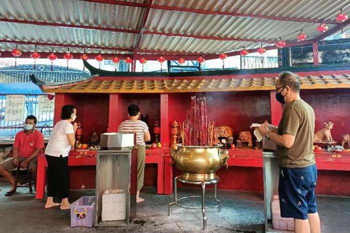 据印尼《国际日报》5月26日报道:佛教徒庆祝2021年卫塞节。许多佛教徒来到西雅加达塔曼萨里(Tamansari)的金德院(Dharma Bhakti)敬拜。