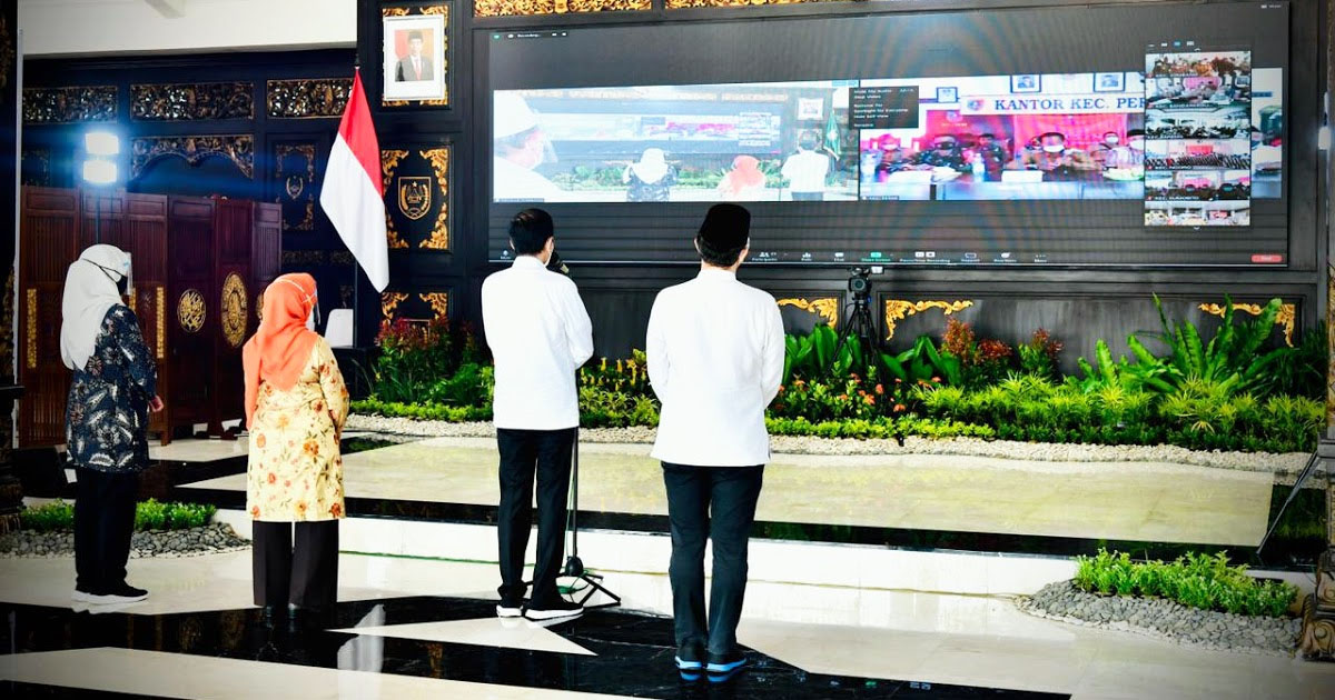 当时佐科总统由财长丝丽·穆丽亚妮(Sri Mulyani Indrawati)陪同视察及互相交谈数次。然后他们继续视察其它10个省区的金融界服务的工作人员的接种疫苗情况。佐科通过视频会议与提供接种的执行人员打招呼。