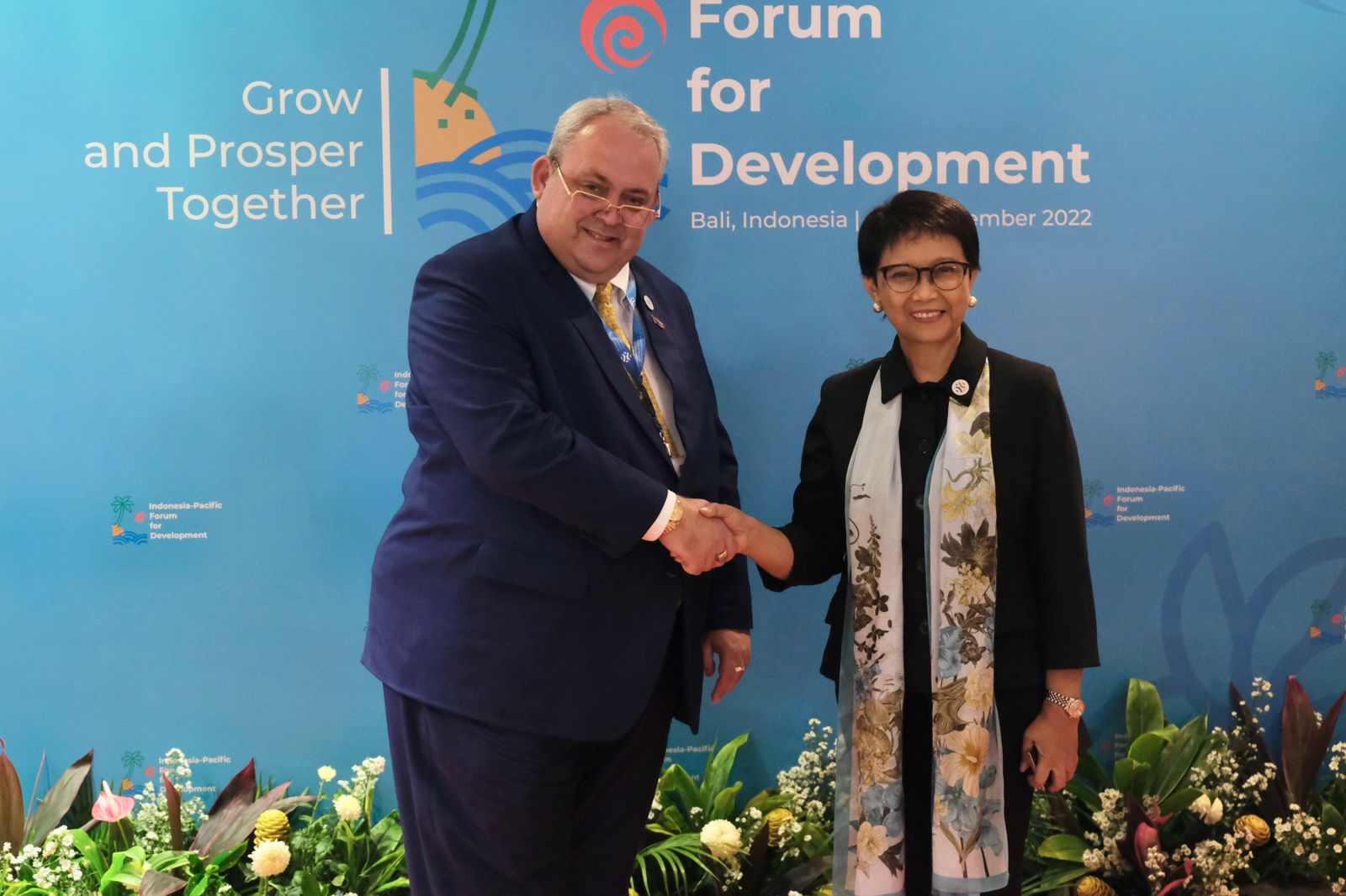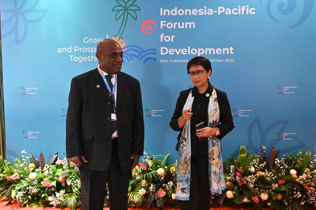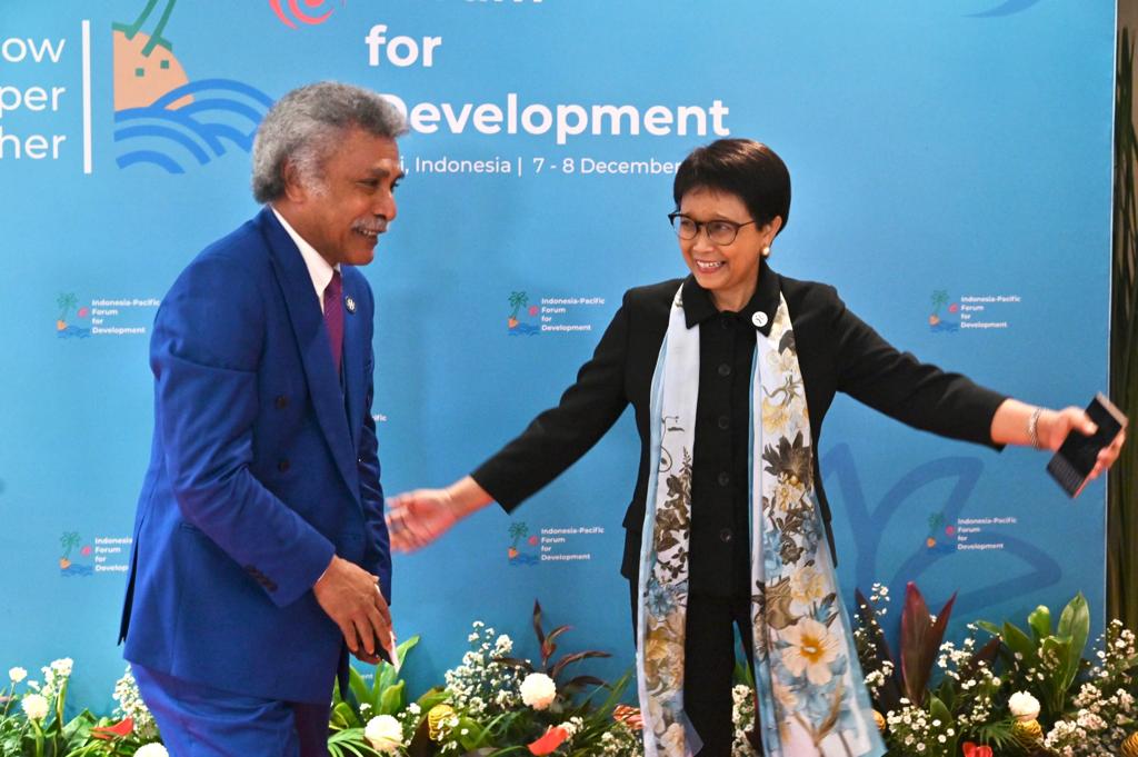 据印尼外交部消息,印尼外长蕾特诺于12月6日在印尼-太平洋发展论坛(IPFD)前同部分太平洋岛国及组织举行了系列双边会议,主要包括东帝汶、巴布亚新几内亚、瓦努阿图及美拉尼西亚先锋集团(MSG)等。蕾特诺表示,印尼是太平洋地区美拉尼西亚人最多的国家之一,至少有1100万印尼公民是美拉尼西亚人。作为太平洋地区的一部分,印尼致力于继续加强同太平洋地区的合作,愿在Pacific Elevation框架下,信守对太平洋地区的一贯承诺。