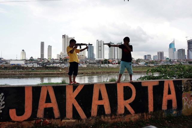 雅加达坐落在靠近海岸的沼泽地带,13条河流在这里纵横交错。为了取水方便,不少贫民的房子就建在河边。每逢雨季,暴雨引发城市内涝,贫民窟往往会成为被淹的重点。