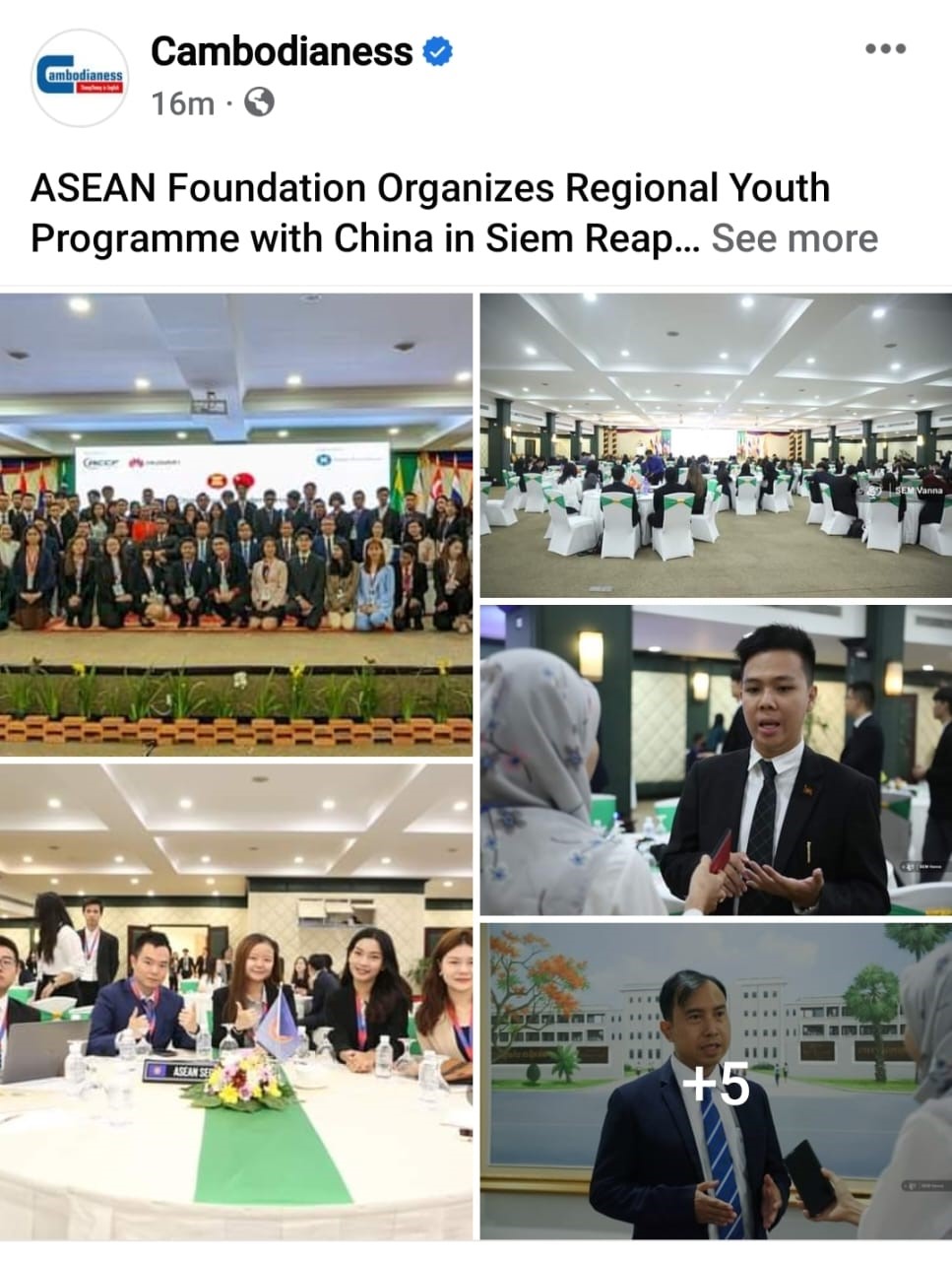 中国—东盟青年领袖计划(The ASEAN-China Young Leaders Programme)由东盟基金会主办,中国—东盟合作基金提供支持,北京大学区域与国别研究院协办。该活动于6月19日至23日在柬埔寨暹粒市举行,开幕式上,中国驻东盟使团侯艳琪大使以视频方式出席并致辞,东盟秘书处社区及企业事务部社区事务局局长李戎戎(Lee Yoong Yoong)以及北京大学代表等发表讲话。